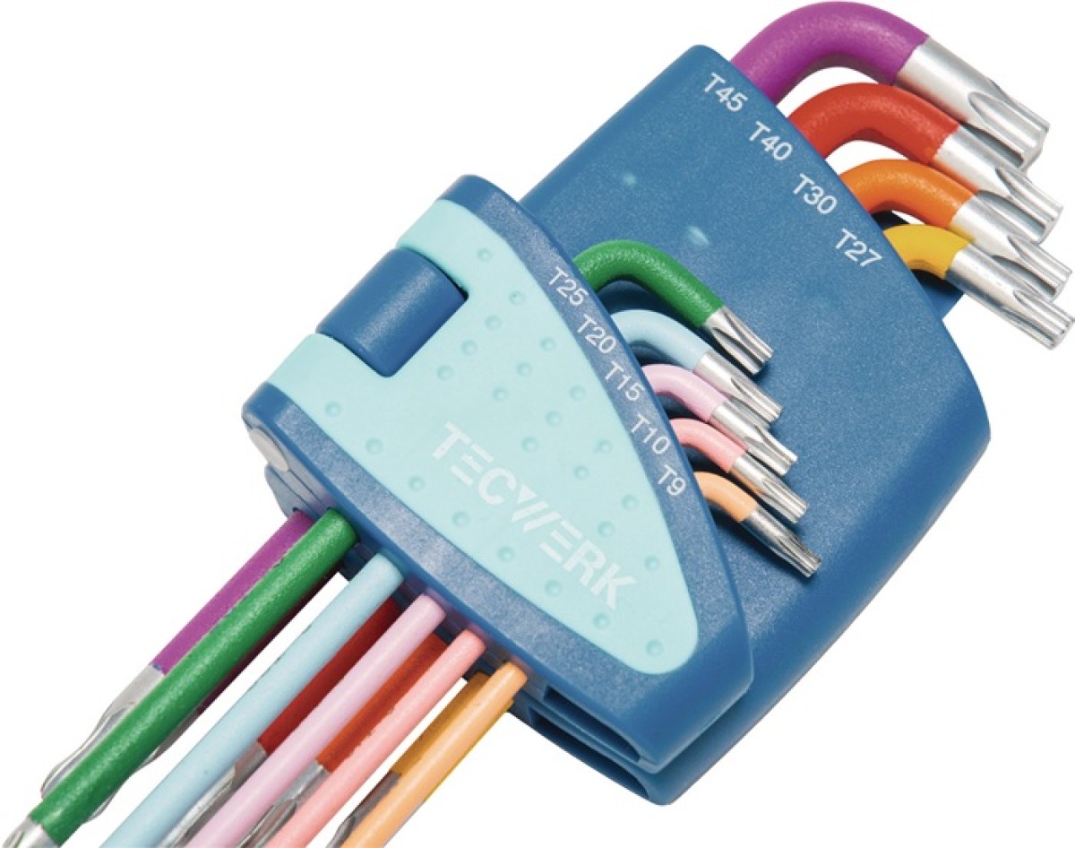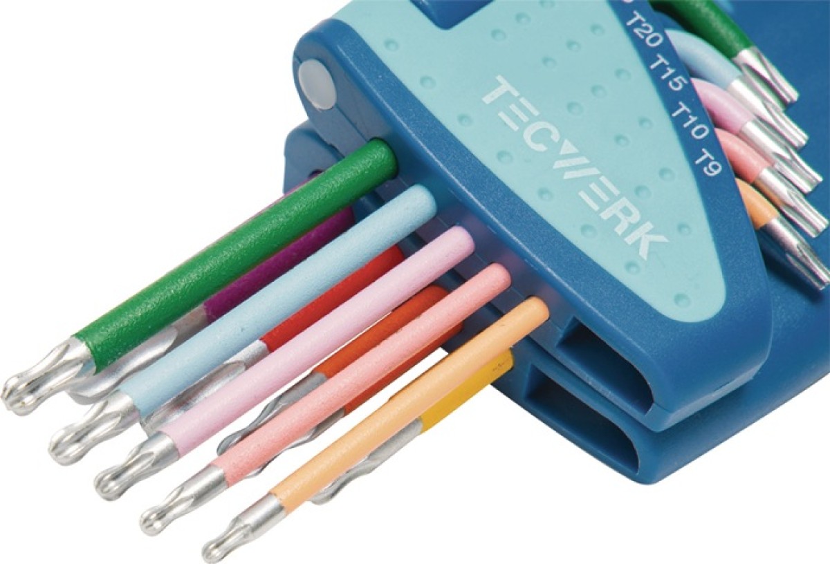 Tecwerk Haakse schroevendraaierset 9-delig T9- T45 kleurcodering kunststof houder TECWER
