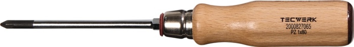 Tecwerk Schroevendraaier maat PZD 2 klinglengte 100 mm houten greep ronde kling met 6-Ka